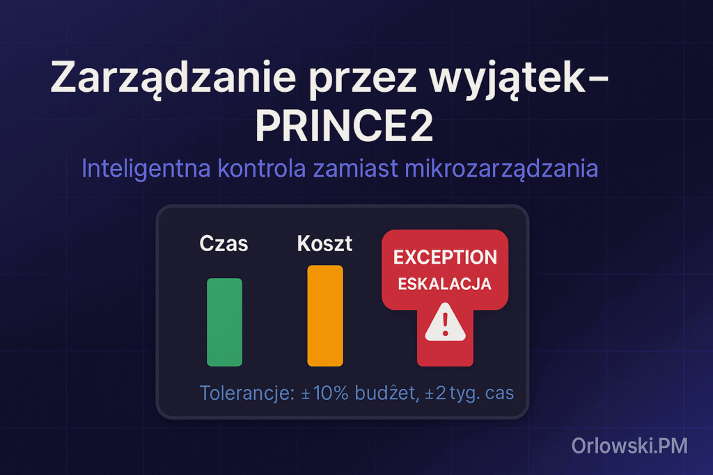 Kiedyś myślałem, że najbezpieczniejszą drogą do sukcesu projektu jest bycie wszędzie naraz: znać każdy ticket, komentować każdy commit, uczestniczyć w każdym spotkaniu. Brzmi znajomo? W wielu firmach wciąż pokutuje przekonanie, że „dobry” menedżer to ten, który trzyma rękę na każdym szczególe. Tymczasem praktyka – i zdrowy rozsądek – podpowiadają coś odwrotnego: prawdziwa kontrola nie polega na podglądaniu zegarka co pięć minut, tylko na tym, by w ogóle wiedzieć, kiedy ten zegarek ma nas zaalarmować. W PRINCE2 nazywa się to zarządzaniem przez wyjątek: wyznaczasz ramy działania, a interweniujesz dopiero wtedy, gdy ktoś albo coś wykracza poza ustalone tolerancje. Nie dlatego, że jest ci obojętne, co się dzieje w projekcie, lecz dlatego, że chcesz poświęcać uwagę rzeczom naprawdę ważnym.